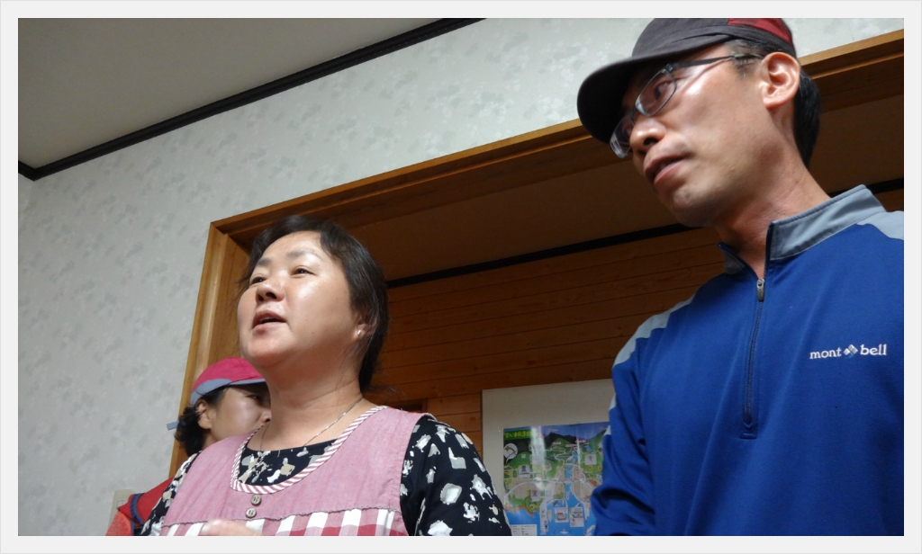 민박집 주인이 인사말씀... 팀장이 동시통역중.. 주인아주머니는 관광협회에 임원이기도합니다.